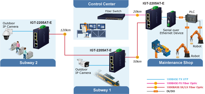 Промышленный гигабитный медиаконвертер PLANET IGT-2205AT-E обеспечивает полнопортовую гигабитную скорость передачи данных. Он отличается высокой надёжностью и безопасностью, что гарантирует бесперебойную работу в сложных условиях, таких как шкафы управления транспортом, производственные цеха, наружные установки и места с экстремальными температурами. Кроме того, IGT-2205AT-E совместим с SFP-трансиверами 100/1000 Мбит/с, обеспечивая стабильное соединение на больших расстояниях и гибкое развертывание промышленных сетей.