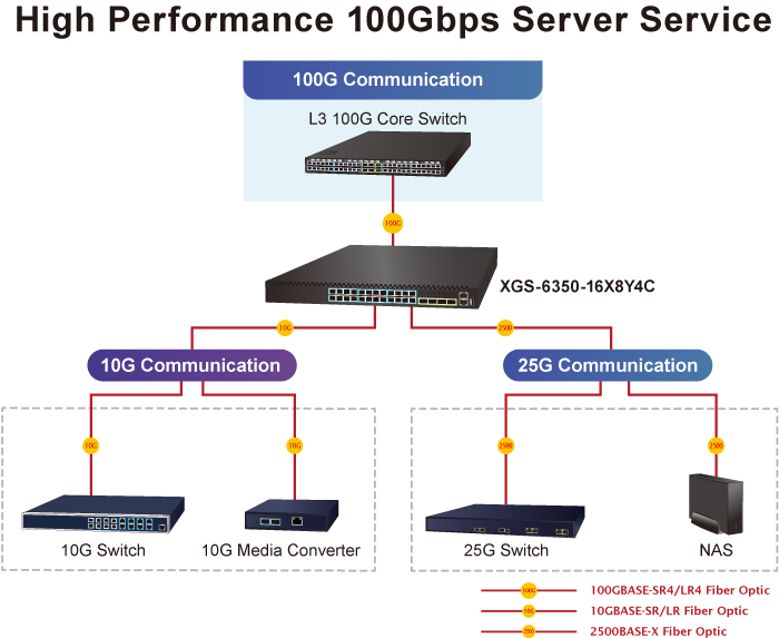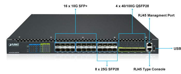 XGS-6350-16X8Y4C | Layer 3 16-Port 10G SFP+ + 8-Port 25G SFP28 + 4-Port 100G QSFP28 Managed Ethernet Switch |